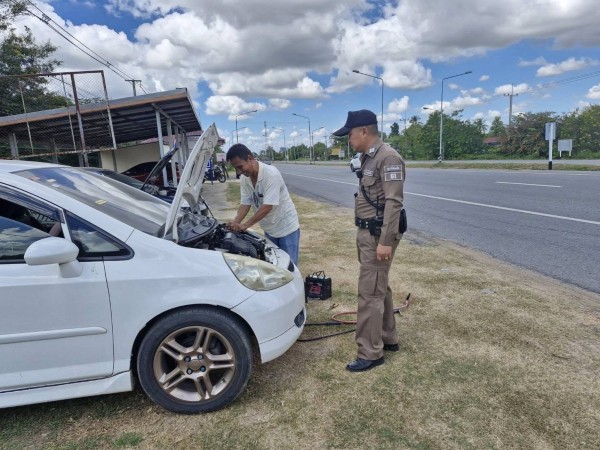 ช่วยเหลือประชาชนแบตเตอรี่รถยนต์หมด บริเวณหน้าตู้ยามโพธิ์สัยสามาร...